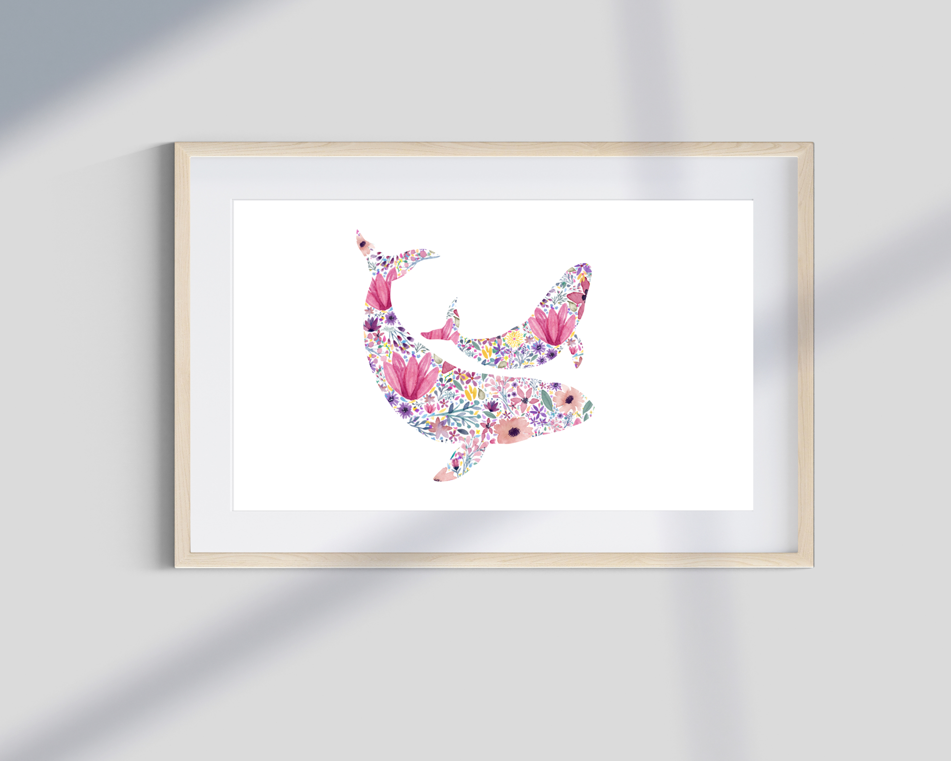 Digitally hand-drawn and locally printed on fine art matte paper; combines the island’s silhouette with soft floral layers.
