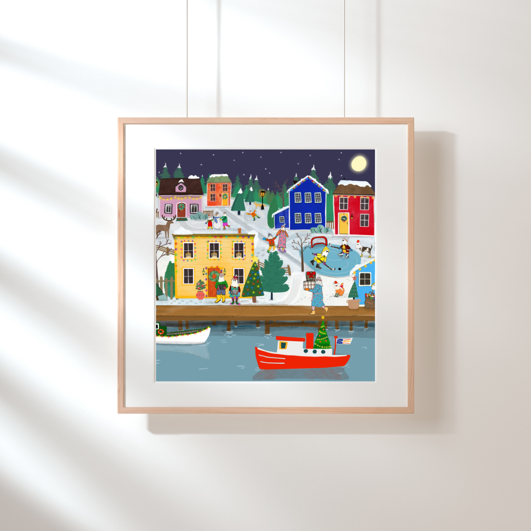 A cozy, nostalgic Christmas scene inspired by small-town Newfoundland.